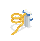 Características del tobogán de barrel & slide en bajo costo y diseño único. El ángulo al final de la salida del tobogán asegura que el huésped experimente la sensación de volar.